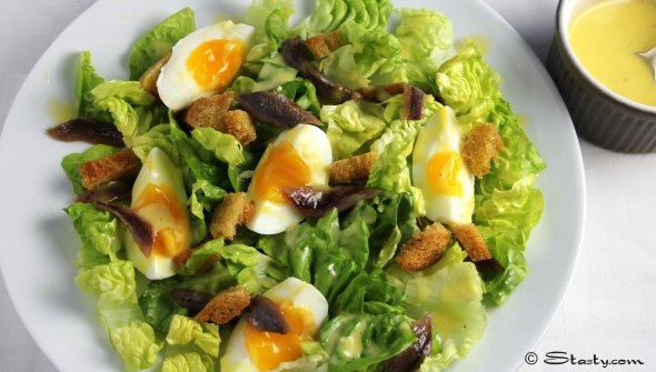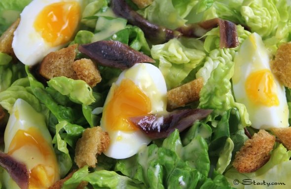 I think it’s probably safe to say that the Irish summer is well and truly over. Rain is pelting down and attacking the windows and the trees outside are being whipped of their leaves. Autumn is most definitely upon us, so this may be the last summery salad that I post for a while. I saw this salad on Rick Stein’s Spain on BBC and just had to make it. I am not generally a fan of anchovies on their own, though I like them in dressings or sauces. So, I wanted to try this salad as a way of starting to appreciate the humble anchovy. This salad really relies on the quality of ingredients, so good anchovies and free range eggs are a must. The accompanying aioli is so delicious, that, I’d nearly eat it alone with a spoon. This salad makes a great starter or tea-time snack and it definitely convinced me to eat more anchovies.