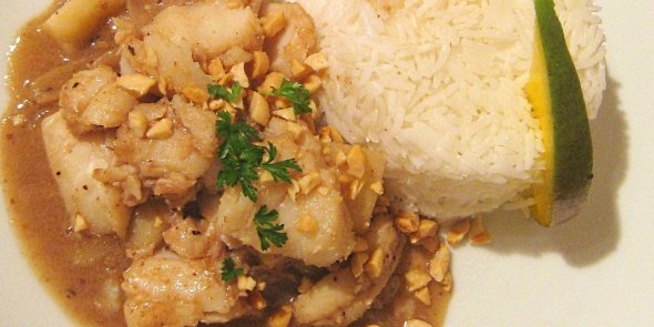 In a saucepan heat the oil and add the potato chunks, shallots, coconut milk, fish sauce, curry paste, tamarind water, and sugar. Leave uncovered and simmer gently for 20 –25 minutes, or until the potatoes are cooked. Add the fish and cook for a further 5 minutes (time depends on the thickness of your fish chunks).