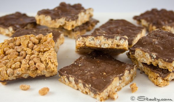 These delicious treats are kind of a cross between a chocolate rice crispy cake and a toffee chocolate square. I use two types of chocolate as I think the dark chocolate offsets the sugary sweetness of the toffee. These treats are light ,crispy and fantastically moreish. They will keep for a few days in an airtight tin – that’s if you can resist eating them.