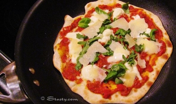 This is a tough one if you are cooking for a crowd as you would need to have a lot of pans on the go. And you really need to eat these pizzas as soon as they are cooked. But they are delicious.