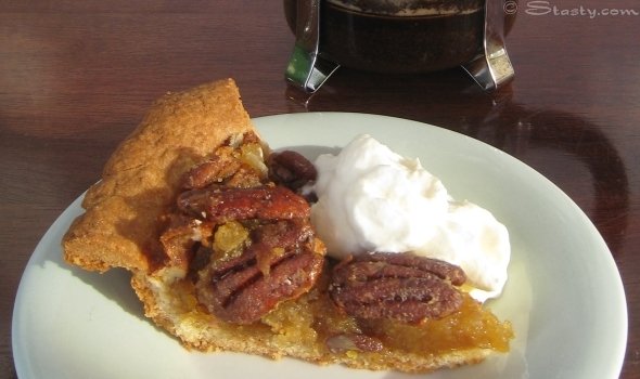 I love sweet, nutty buttery pecan pie so much. This recipe is made even more scrumptious with the addition of warming rum. This dish is not exactly low in calories,..but I did find out that pecans are one of the healthiest nuts around….so you definitely need some pecan pie in your life.
