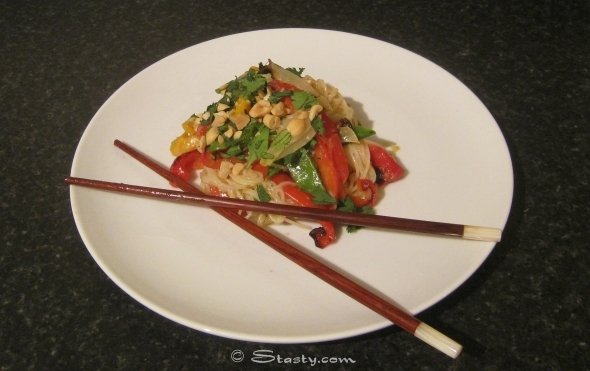 The noodles I used were almost too fine.  Rice noodles vary in thickness from 0.015 to 0.02 inches. I prefer the thicker ones when I can get them.