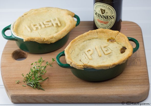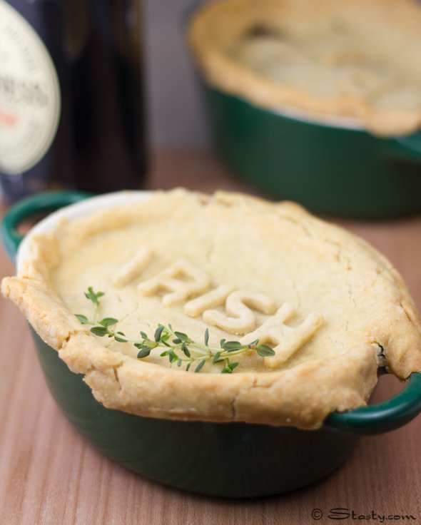 This hearty, rich stew is covered with crisp buttery pastry which crumbles when you dip your spoon in to take a bite. The slightly bitter Guinness, the tender beef, cream and parmesan make this one satisfying pie. The beef is cooked slowly in a bath of Guinness and then wrapped in a sheet of pastry. It’s a relatively easy dish to prepare, but it does require time for all the flavours to infuse and for the meat to become meltingly tender. To save some time, you could use ready-made short crust / puff pastry on top. This is a real wholesome and comforting stew to celebrate your St. Patrick’s Day.